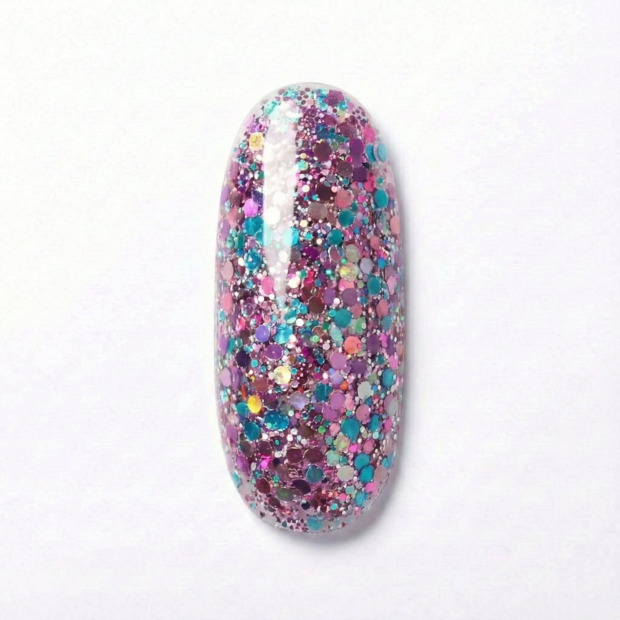 The soft allure of orchids captured in a bottle, sprinkled with twinkles that mimic the morning's gentle light.