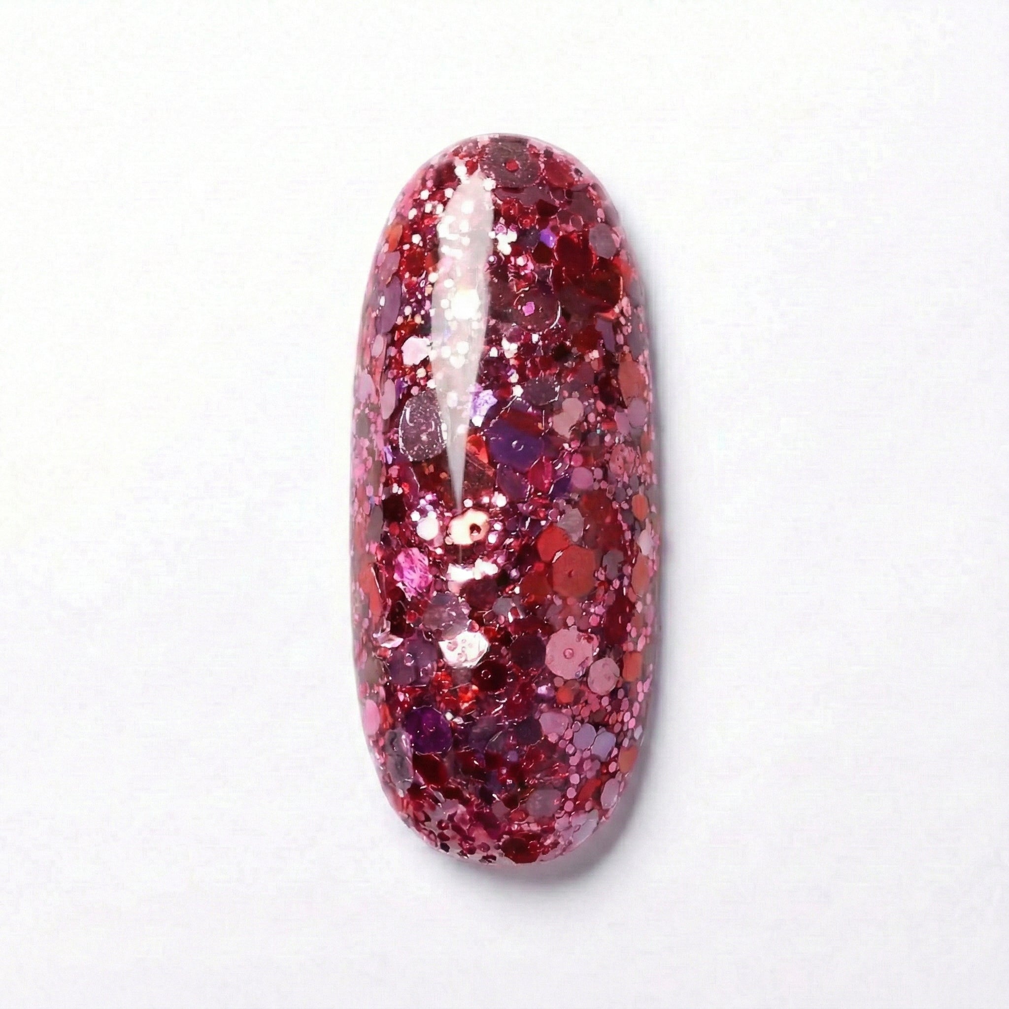 A fiery display of red enriched with hues of rose gold and pink.