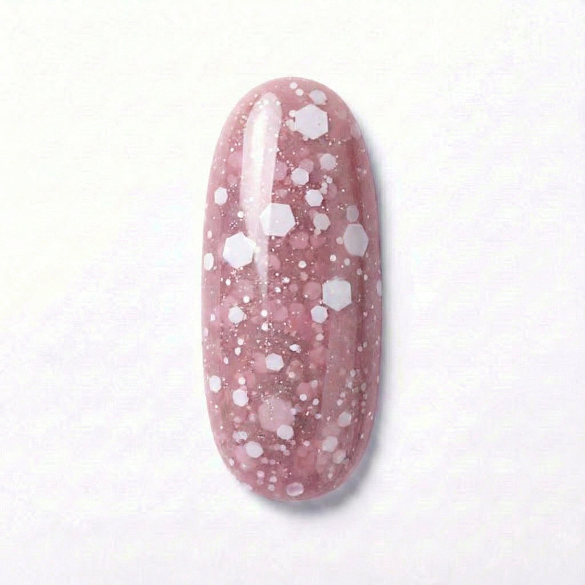 A soft, pastel pink syrup base is blended with generous scoops of matte white confetti pearls. This shade captures the nostalgic joy of a creamy strawberry drink, offering a fun and feminine manicure that looks good enough to sip on a sunny day.