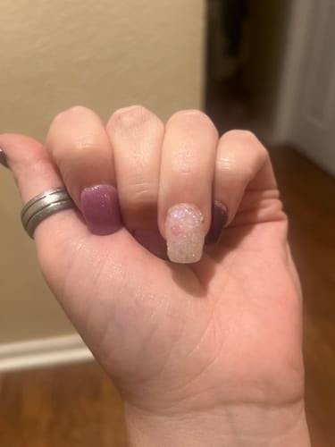 A chunky glitter dip powder boasting a snow white pear color paired with the ethereal charm of light & aurora green purple. Elevate your nails with a touch of winter magic.